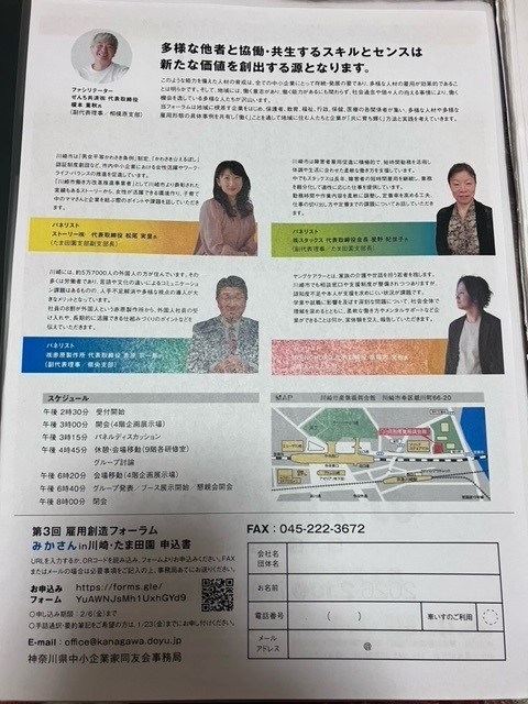 今回は、先日川崎で開催されました神奈川県中小企業家同友会主催による「第3回雇用フォーラムみかさんin川崎・たま田園」に参加させていただきました。「多様な他者と協働・共生する力が新たな力を生む。」というテーマをもとに同友会会員企業の代表者の方5名がパネルディスカッション形式で、女性活躍推進、障害者雇用、外国人人材、ヤングケアラー(家庭環境に制約がある)と多様性な雇用について話し合いが行われました。